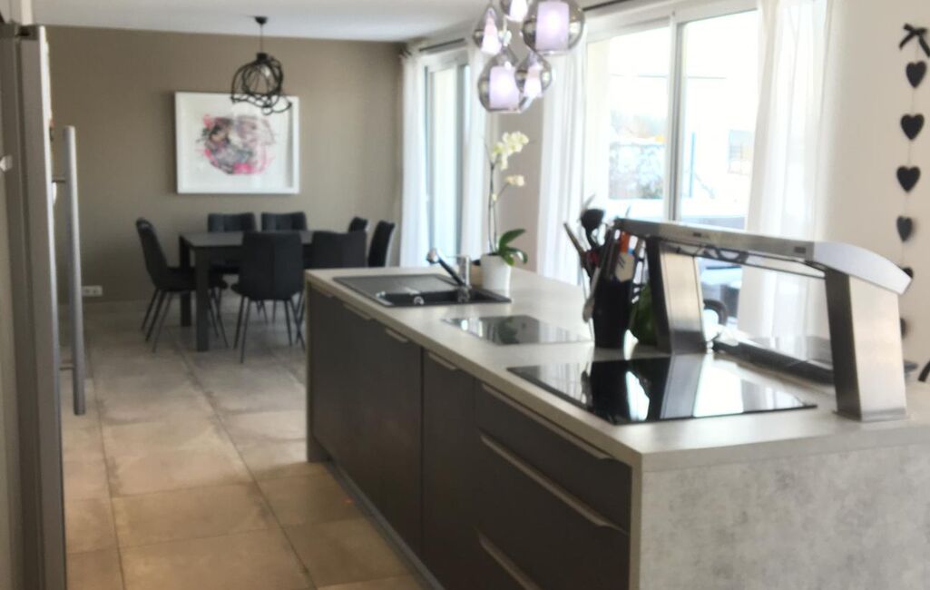 Epinal, sur 1024 m² de terrain clos et paysagé, Villa contemporaine d’architecte construite de 2014 avec une surface de 200 m2 habitable, elle est composée d'une entrée avec placard, une cuisine ouverte sur salon séjour accès terrasse, une chambre avec salle d’eau. À l’étage, trois chambres dont une suite parentale dressing et salle d’eau, une salle de bains, une pièce lumineuse en mezzanine pouvant servir de salle de jeux, bureau, ou chambre, piscine semi-enterrée chauffée et spa. Cellier/buanderie, deux garages. Normes RT 2012, chauffage aérothermique au sol, climatisation. Panneaux solaires, rentabilité annuelle 1700 euros, cout élec ménager 1 661 € cout électricité ANNUEL gain 39 euros Prix: 610 000 euros ref : 21511 b A SAISIR