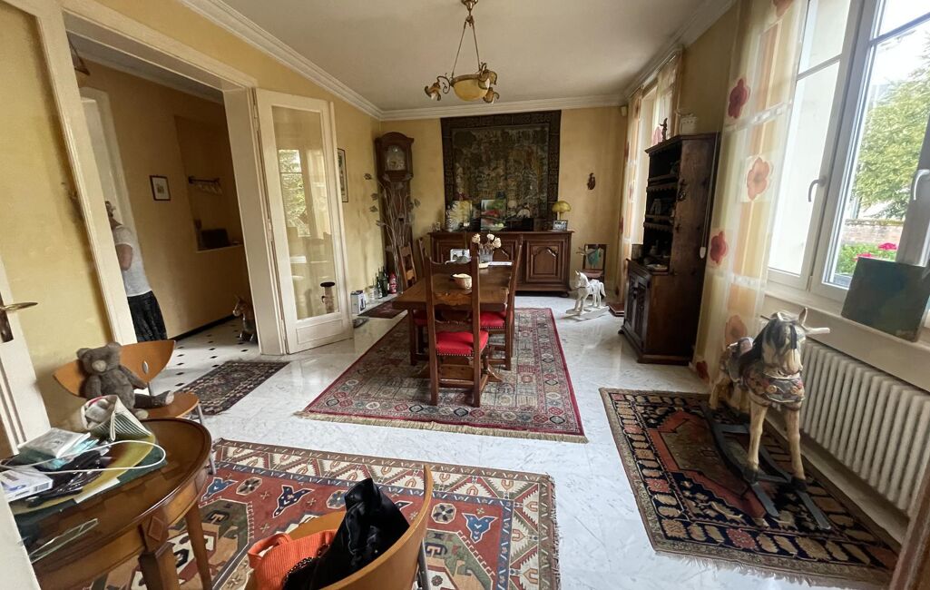 Epinal, à deux pas du centre ville, propriété bourgeoise qui associe le charme du bourgeois dans un environnement verdoyant, elle est composée d'une entrée avec verrière, 1 cuisine intégrée ouverte sur terrasse, 1 vaste salle à manger, 1 salon-séjour accès terrasse, cheminée, 1 wc, à l'étage, 1 chambre avec dressing, 3 autres chambres, 1 salle de bains, 1 wc, au 2ème étage, 3 chambres, 1 salle d'eau- wc, greniers, sous avec avec 1 piece chambre-salle d'eau, 1 buanderie, 1 cave, 2 garages, 1 piscine en toute intimité, différents espaces de terrasses; 2 dépendances, C.C. gaz, produit atypique DPE en cours à saisir Prix 630 000 euros, réf:22048