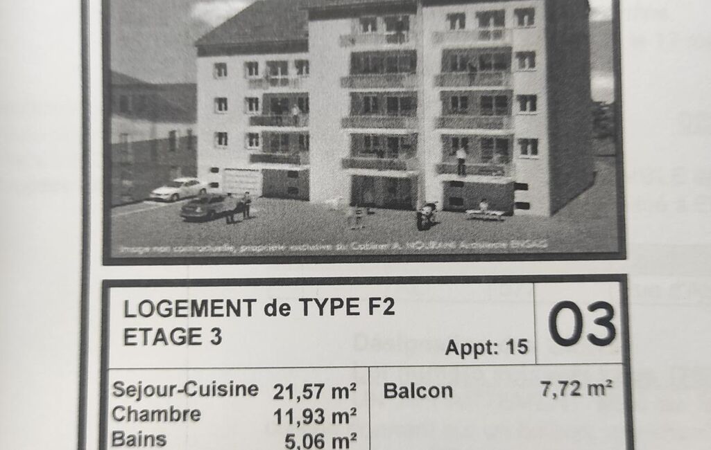 EPINAL, au 3ème étage d'une résidence, appartement d'environ 48 m² composé d'une entrée avec dégagement, une cuisine, salon/séjour accès terrasse, sdb, wc. Parking fermé. Réf. 21976. Prix : 108000 €. DPE D.
