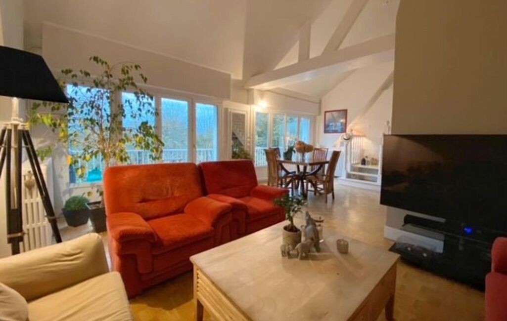 SAINT NAZAIRE au calme, dans un cadre exceptionnel, à 200 m de la plage et du parc du PORCE, Charmant Appartement en duplex de 102 m² au sol et 88,34 m² habitable, il se compose d'une entrée, d'une cuisine intégrée, un séjour salon lumineux de 33 m² avec un plafond cathédral ouvrant sur un balcon idéal pour profiter de l’air marin, de deux chambres avec placards, d'une salle de bains avec toilettes À l’étage : une chambre en mezzanine de 17 m²,avec un espace bureau, un débarras avec espace machine à laver et d'un placard supplémentaire. Un garage fermé, un local à vélo ainsi qu'un parc privatif, complète